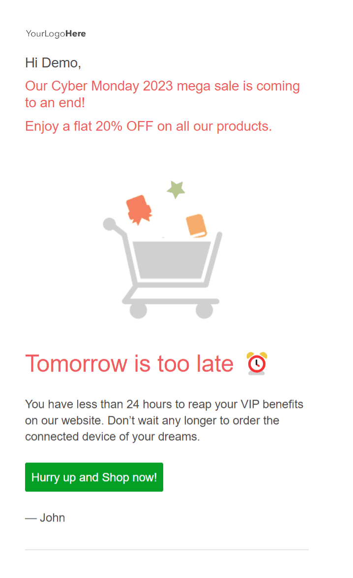 You can literally setup any offer and create a smashing Holiday Season email in under 30 minutes.