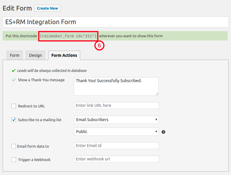 Step 6 : Copy the Rainmaker form shortcode generated after saving the form.