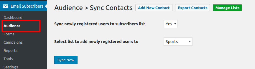 Sync option will add all the newly created WordPress users (with any user role) in the Icegram Express list.
