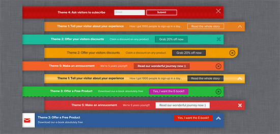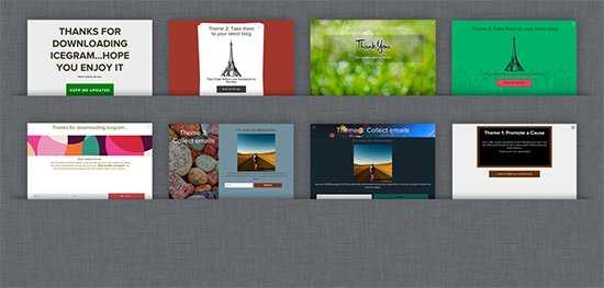 Icegram Engage comes with 20 beautiful themes. They integrate well with your favorite WordPress theme and do not slow down your site.